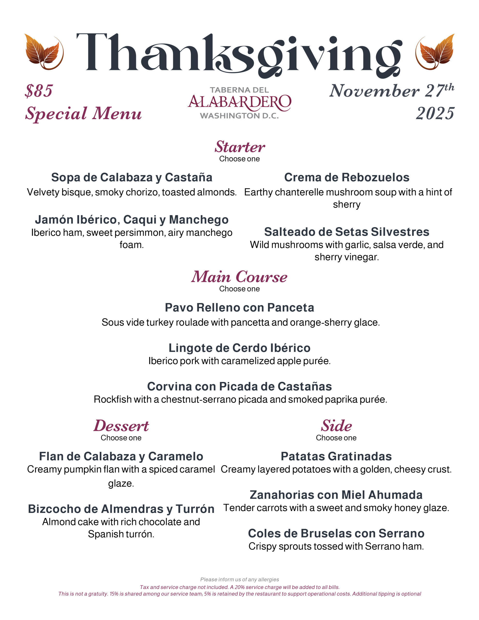 This Thanksgiving, we invite you to step away from the kitchen and into the warmth of our distinguished Washington, D.C. home. At Taberna del Alabardero, we are weaving the cherished American tradition with the rich, elegant tapestry of Spanish haute cuisine.